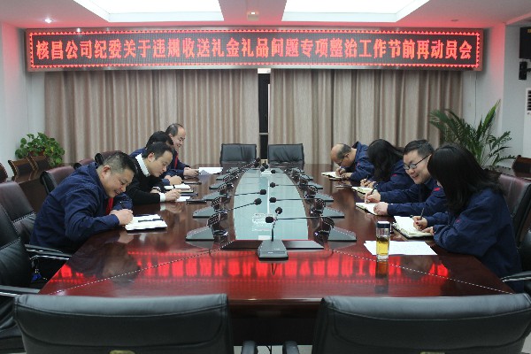 1月30日,正值新春佳節(jié)到來之際,核昌公司紀委組織公司全體領(lǐng)導班子成員、兩辦負責人在公司小會議室召開會議,就集團公司關(guān)于違規(guī)收送禮金問題專項整治工作相關(guān)通知精神進行傳達。會...