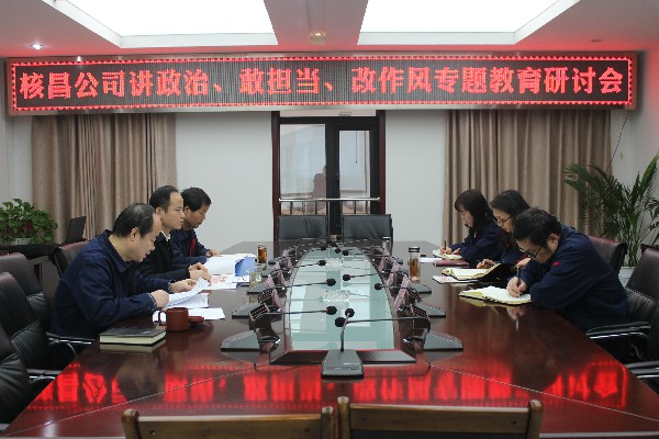 1月14日,核昌公司黨委在公司小會議室組織公司領(lǐng)導(dǎo)班子成員召開2019年一月份黨委中心組學(xué)習(xí)(擴(kuò)大)會議暨講政治、敢擔(dān)當(dāng)、改作風(fēng)專題教育研討會。會議由公司黨委委員、總經(jīng)理?xiàng)钫阎?..