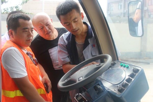 交付儀式舉行完后,核昌公司專業(yè)技術(shù)人員為咸陽市交通運(yùn)輸局工作人員介紹了電動清掃機(jī)的車體結(jié)構(gòu)和操作面板,使工作人員對清掃機(jī)有了簡單的了解。之后,在公司大會議室召開新能源清掃機(jī)培訓(xùn)會,為操作人員詳細(xì)講解了清掃機(jī)的主要參數(shù)、操作方法和應(yīng)注意的問題,并在會后進(jìn)行實(shí)地操作演示,解答操作人員的疑問,使操作人員更加快速、安全的熟悉操作方法。