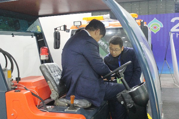 核昌公司展位的精心布置和出色的產(chǎn)品設計吸引了廣大參展客商駐足觀看,客商們不但可以觀看清掃車實地操作視頻,還可以通過與工作人員互動去了解產(chǎn)品性能,展會現(xiàn)場氣氛十分熱烈。