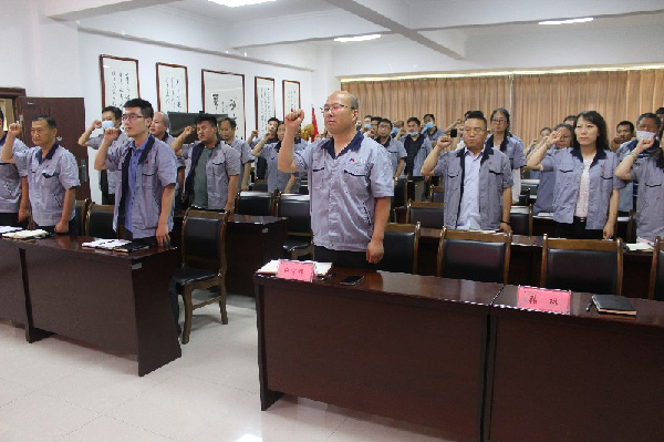 隨后,生產(chǎn)安全部負責人組織大家進行現(xiàn)場管理制度的培訓,要求公司全體員工認真學習,在日常工作中按照制度嚴格執(zhí)行,并帶領(lǐng)大家學習《核昌公司關(guān)于開展2020年“安全生產(chǎn)月”活動的通知》,文件要求活動必須要以“消除事故隱患,筑牢安全防線”主題為指導,深入貫徹執(zhí)行“安全第一、預防為主、綜合治理”的安全生產(chǎn)方針,抓好公司安全生產(chǎn)工作。接著與會人員一起觀看了《嚴守紅線、生命至上》安全警示片,深刻體會到安全職責的重要性,認識到一定要提高自身安全意識,嚴格杜絕三違操作,消除安全隱患和事故。工會副主席李榮帶領(lǐng)全體參會人員宣讀安全誓詞,要求全體員工從我做起,遵章守紀,認真履責,恪盡職守,勤奮工作,確保公司安全生產(chǎn)。