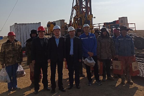 2020年11月13日,黨委書記、董事長王超宏,紀(jì)委書記任中賢前往鄂爾多斯市杭錦旗塔然高勒檢查指導(dǎo)HXY-1600智能型鉆機(jī)及NCT-10泥漿不落地裝置試驗(yàn)工作并慰問參與試驗(yàn)人員。