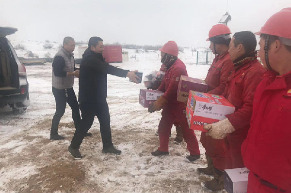 首先,副總經(jīng)理李偉帶領(lǐng)檢查組一行向惡劣環(huán)境下仍堅(jiān)持在野外作業(yè)的全體員工表示致敬和親切慰問,并為大家送上了慰問品,細(xì)致詢問工作人員的生活及身體狀況,提醒駐場工作人員要做好防寒保暖、注意安全、嚴(yán)防安全事故的發(fā)生。